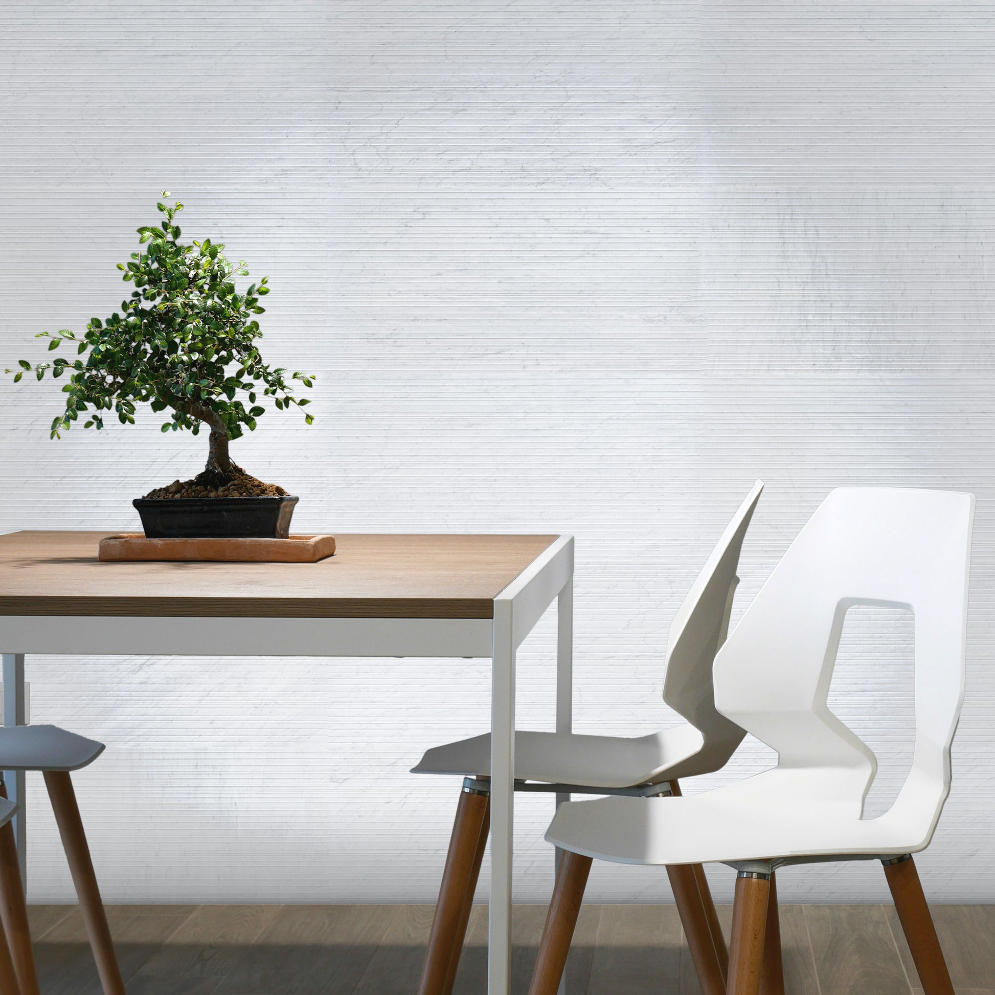 RAVELLO is a delicate fusion of the alluring beauty of natural stone and the sophistication of vertical and horizontal lines. Its neutral tones create an exquisite and effortless appearance, evoking a serene feeling of balance in any environment.